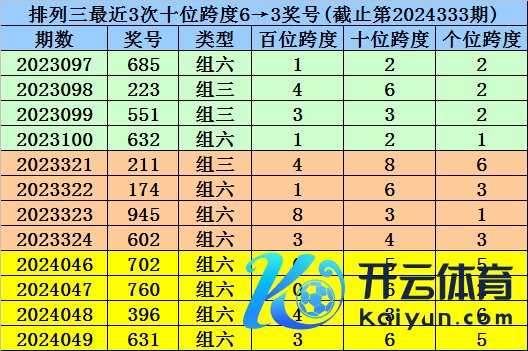 开奖追忆:第2024333期陈设三奖号开出848,奖号奇偶比开出0:3体育赛事直播,012路比开出0:1:2,跨度为4。